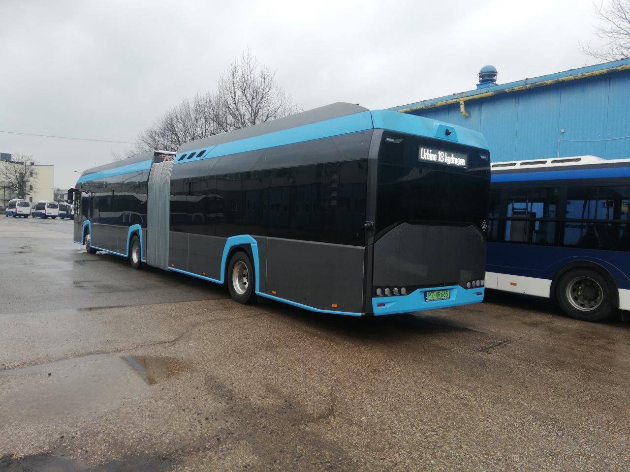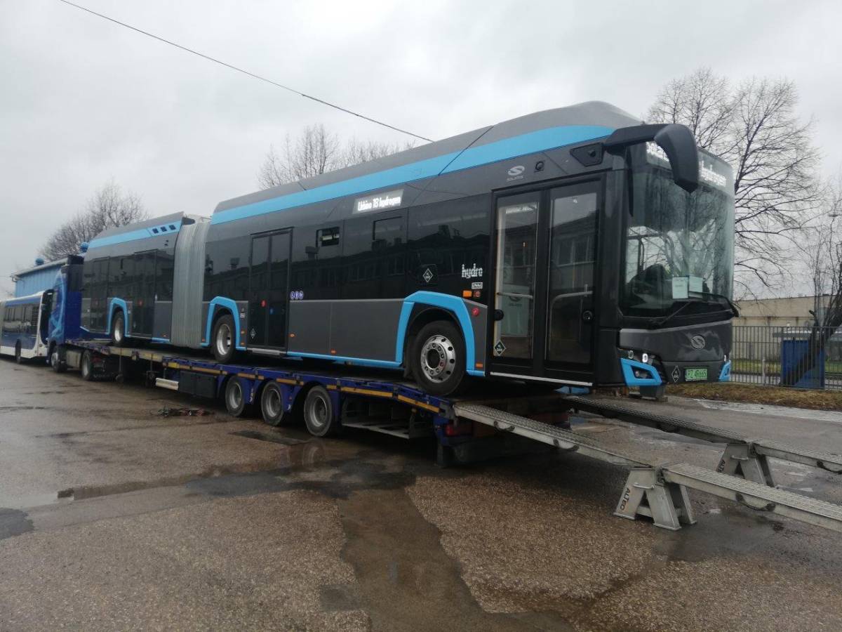 Wczoraj na zajezdnię autobusową Płaszów przy MPK SA w Krakowie przyjechał autobus zasilany wodorem marki Solaris Hydrogen U18, który przez najbliższe dwa miesiące będzie woził pasażerów na regularnych liniach. Zanim jednak wyjedzie na konkretną linię musi zostać przygotowany pod względem oznakowania wewnętrznego i zewnętrznego, doposażony w automat biletowy i kasowniki oraz sprawdzony pod kątem technicznym.