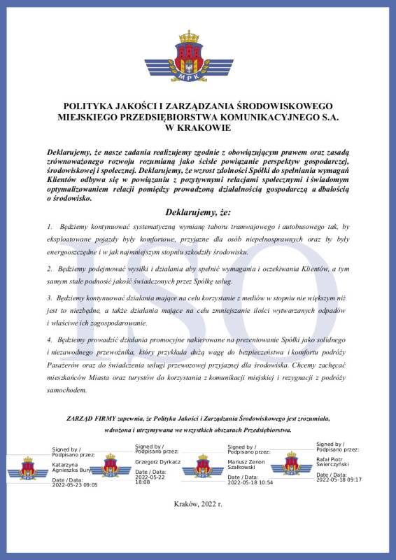 Polityka jakości i zarządzania środowiskowego