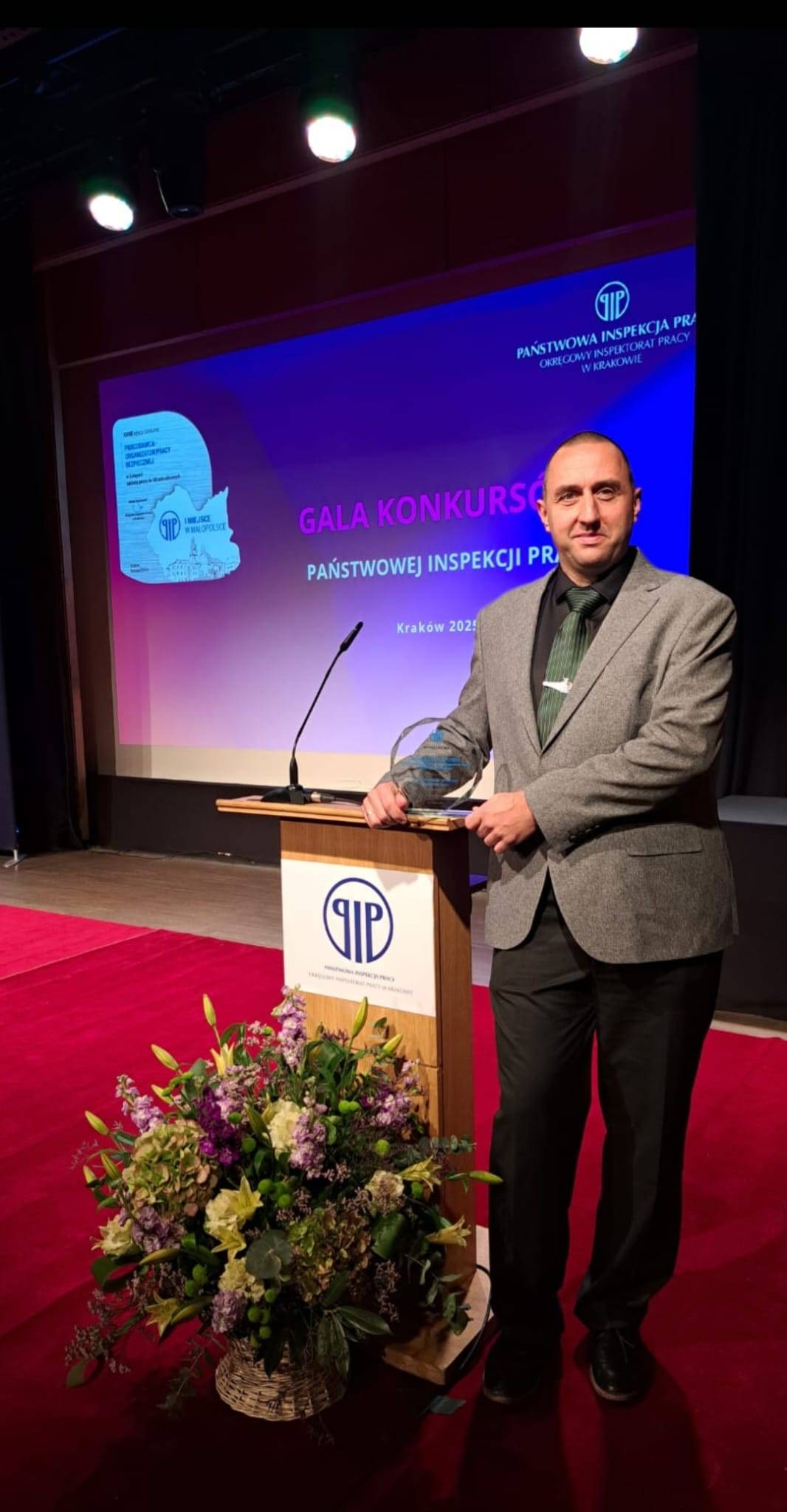 W uroczystej Gali konkursów Państwowej Inspekcji Pracy wyróżniony został Zakładowy Społeczny Inspektor Pracy w MPK w Krakowie, Sławomir Suchoszek, który otrzymał statuetkę "Najaktywniejszego Społecznego Inspektora Pracy". Uroczysta gala odbyła się w środę, 18 listopada w Muzeum Sztuki i Techniki Japońskiej Manggha w Krakowie. Bardzo się cieszymy, że działalność naszego pracownika, który współpracując z zarządem MPK, Inspektoratem BHP w MPK i związkami zawodowymi stale dba o bezpieczeństwo wszystkich pracowników firmy. Ma on również udział w podnoszeniu świadomości pracowników w kwestii bezpieczeństwa, co przynosi wymierne rezultaty.