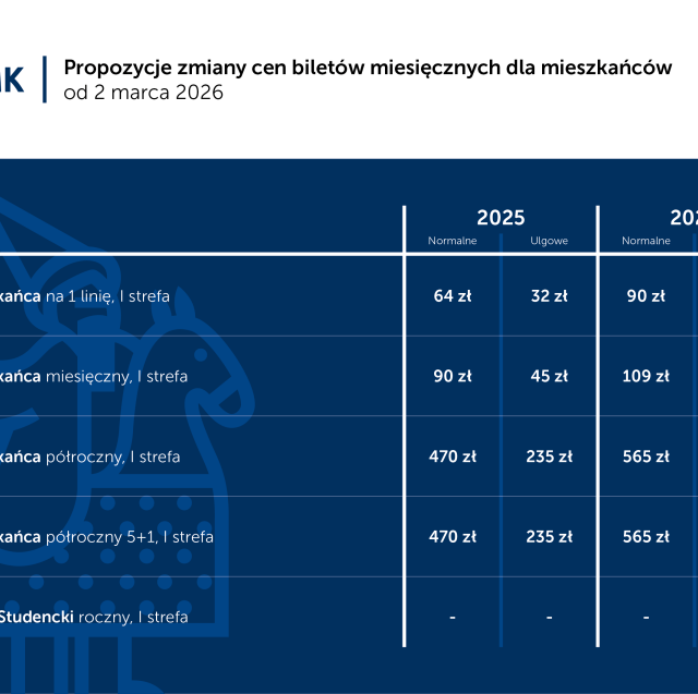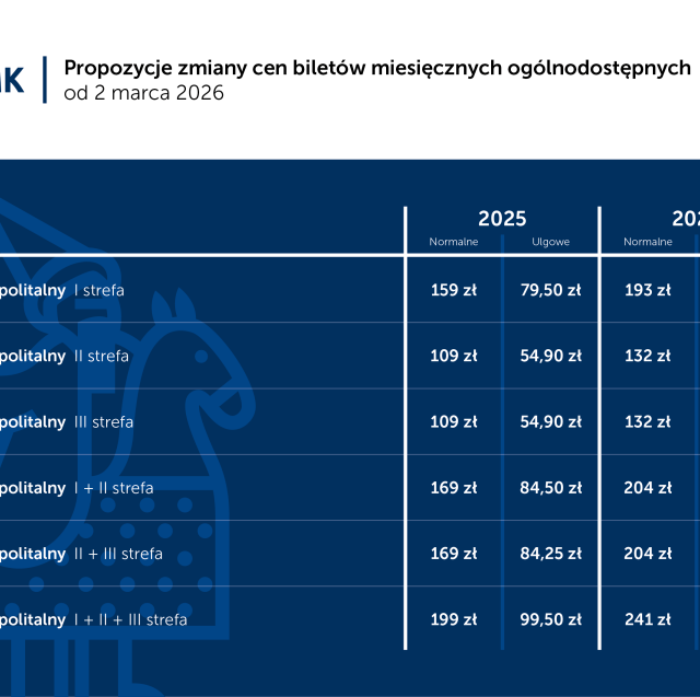 Proponowana zmiana cen biletów okresowych od 2 marca 2026 r.