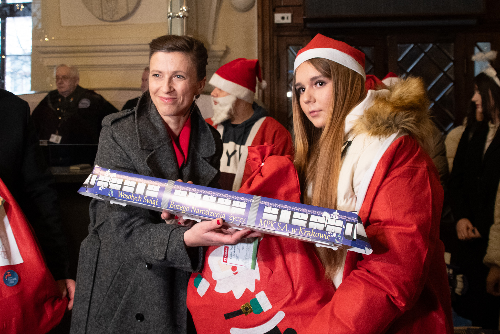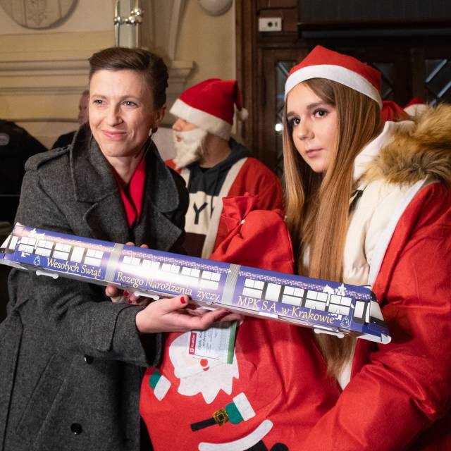 W sobotę, 6 grudnia świąteczny tramwaj MPK najpierw zawiózł prezenty dla chorych dzieci, które w tym dniu były w szpitalu im. S. Żeromskiego. 150 Mikołajek i Mikołajów odebrało prezenty w Urzędzie Miasta Krakowa od Marii Klaman, zastępczyni prezydenta Krakowa i razem z nią pojechało świątecznym tramwajem MPK do szpitala im. S. Żeromskiego. Tam zastępczyni prezydenta razem z Mikołajami przekazała prezenty chorym dzieciom. Liczba Mikołajów nie była przypadkowa - było ich 150, bo tyle lat liczy w tym roku krakowska komunikacja miejska.