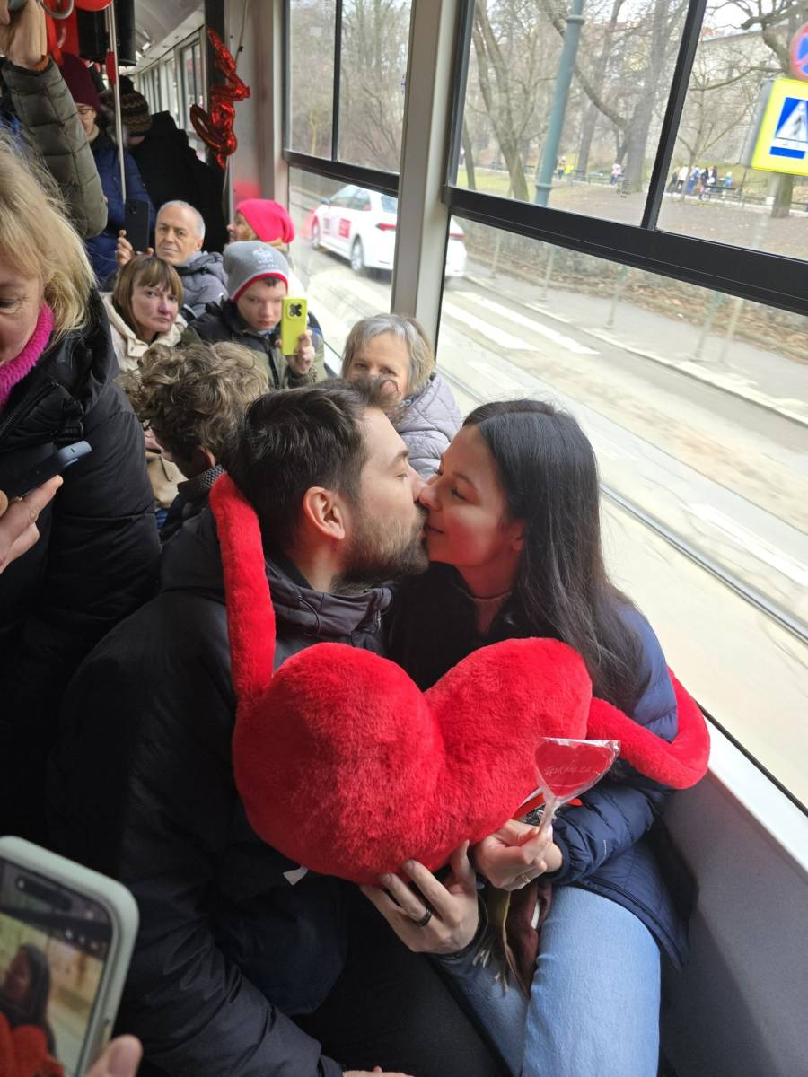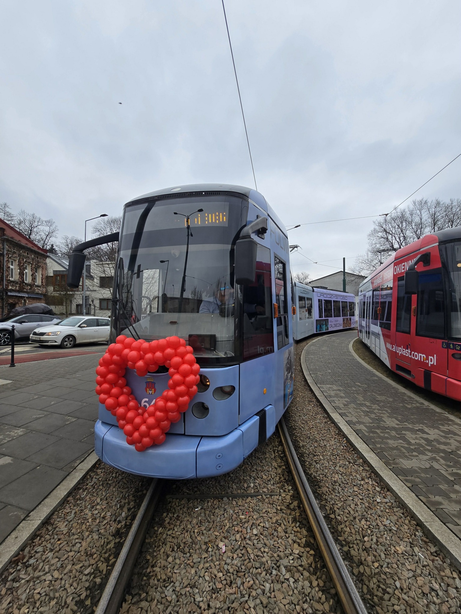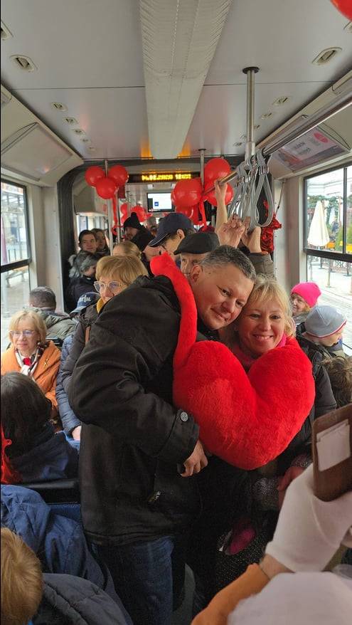 Tramwaj można było łatwo rozpoznać – został udekorowany balonikami w kształcie serca.
