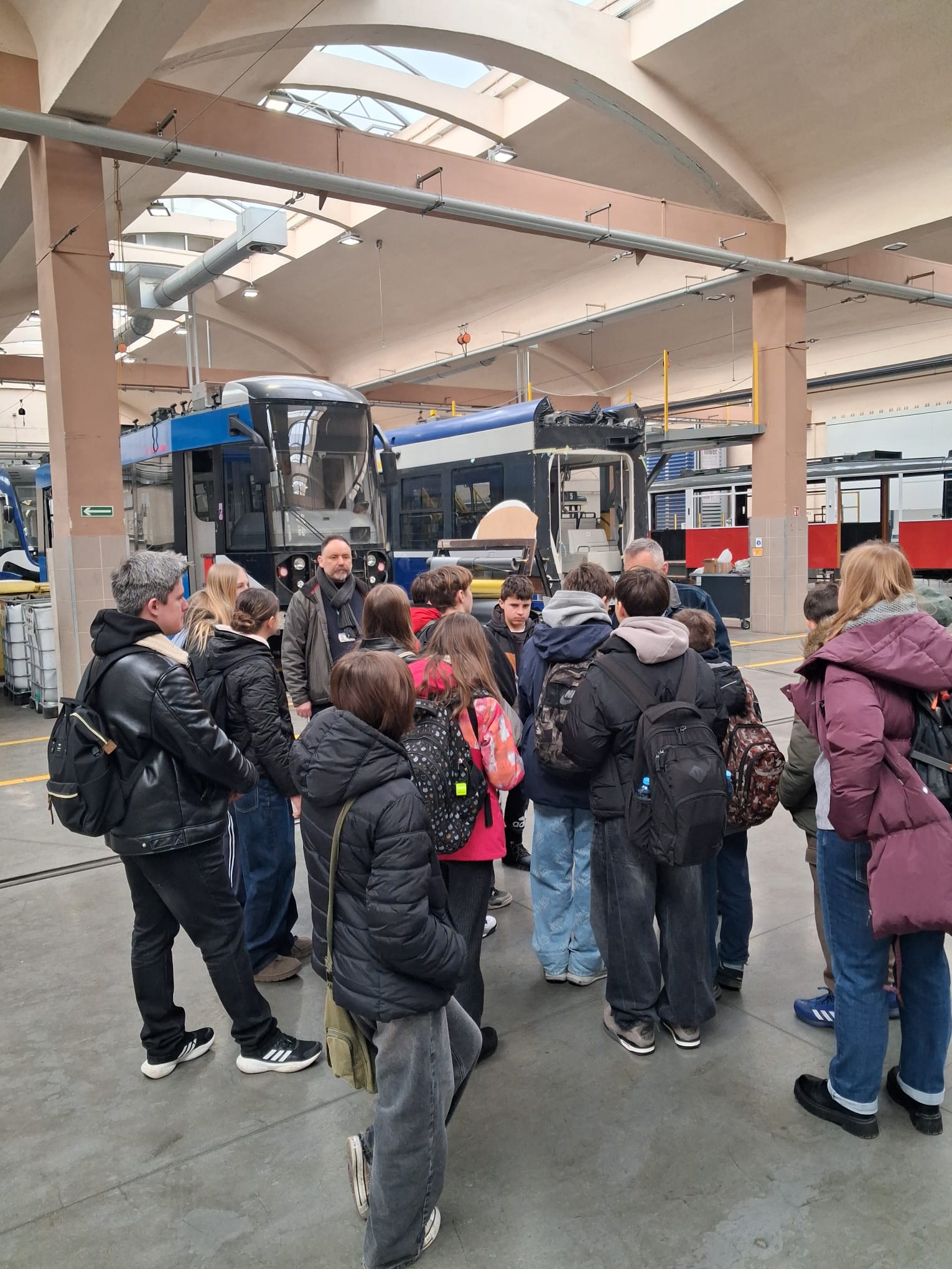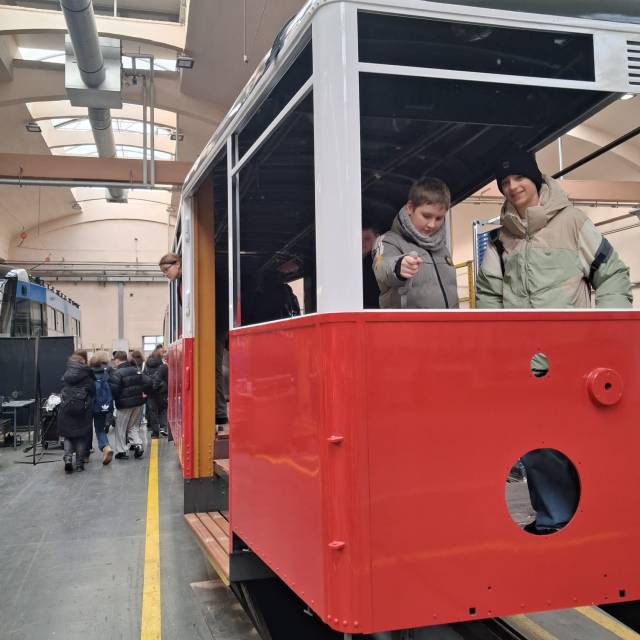 Przewodnikami drugoklasistów byli inspektorzy ruchu MPK, pracownicy stacji obsługi tramwajów, działu marketingu oraz motornicza. Dzieci odwiedziły mechaników, zobaczyły halę serwisową, gdzie tramwaje serwisowe. Mogły tam m.in. obserwować jak tankuje się piasek do tramwaju, który potem pomaga prowadzącym w hamowaniu. Nie mogło zabraknąć wejścia do kabiny tramwaju oraz przejazdu przez myjnię, który wzbudził duży entuzjazm dzieci.
