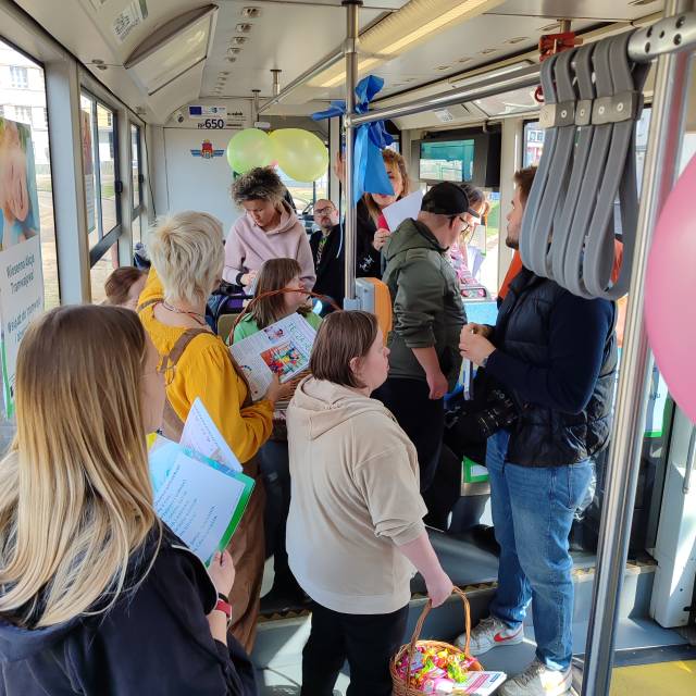 Wspólnie ze Stowarzyszeniem Rodziców i Przyjaciół Osób z Zespołem Downa „Tęcza” w Krakowie został zorganizowanay przejazd wyjątkowym tramwajem, który kursował w sobotę, 21 marca z okazji Światowego Dnia Osób z zespołem Downa. Ten wyjątkowy tramwaj kursował w godzinach 11.00–14.00. Akcja rozpoczęła się na pętli w Łagiewnikach o 11.00, następnie tramwaj przejechał do pętli Bronowice Małe, a stamtąd kursował do pętli Salwator (przejazd od Teatru Bagatela, przez ul. Basztową, Westerplatte i Pl. Wszystkich Świętych).